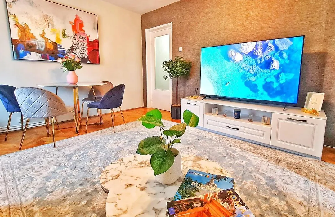 This apartment lies 19 minutes' walk from the Herăstrău King Michael I Park. 10 minutes' walk from Aviatorilor tube station, the 1-bedroom property is also not very far from Sector 1 Municipal Hall of Bucharest. Kisseleff Park is located approximately 8 minutes' walk from this 78 m² apartment.